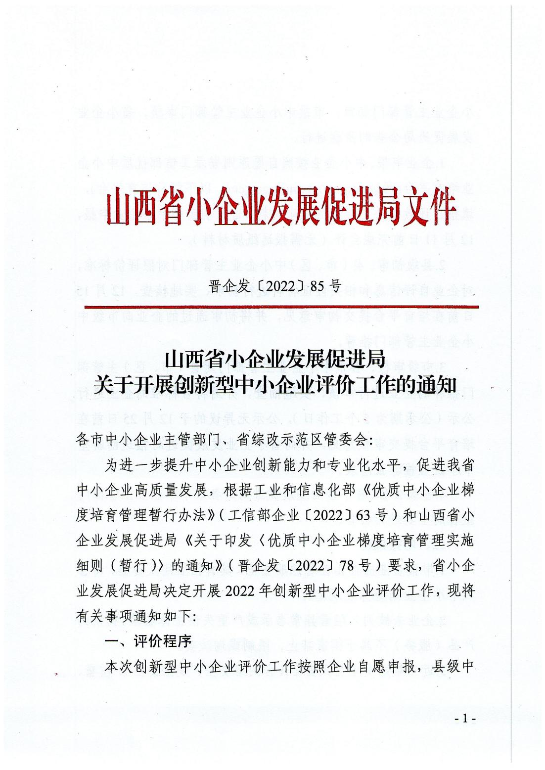 關(guān)于開展創(chuàng)新型中小企業(yè)評價工作的通知